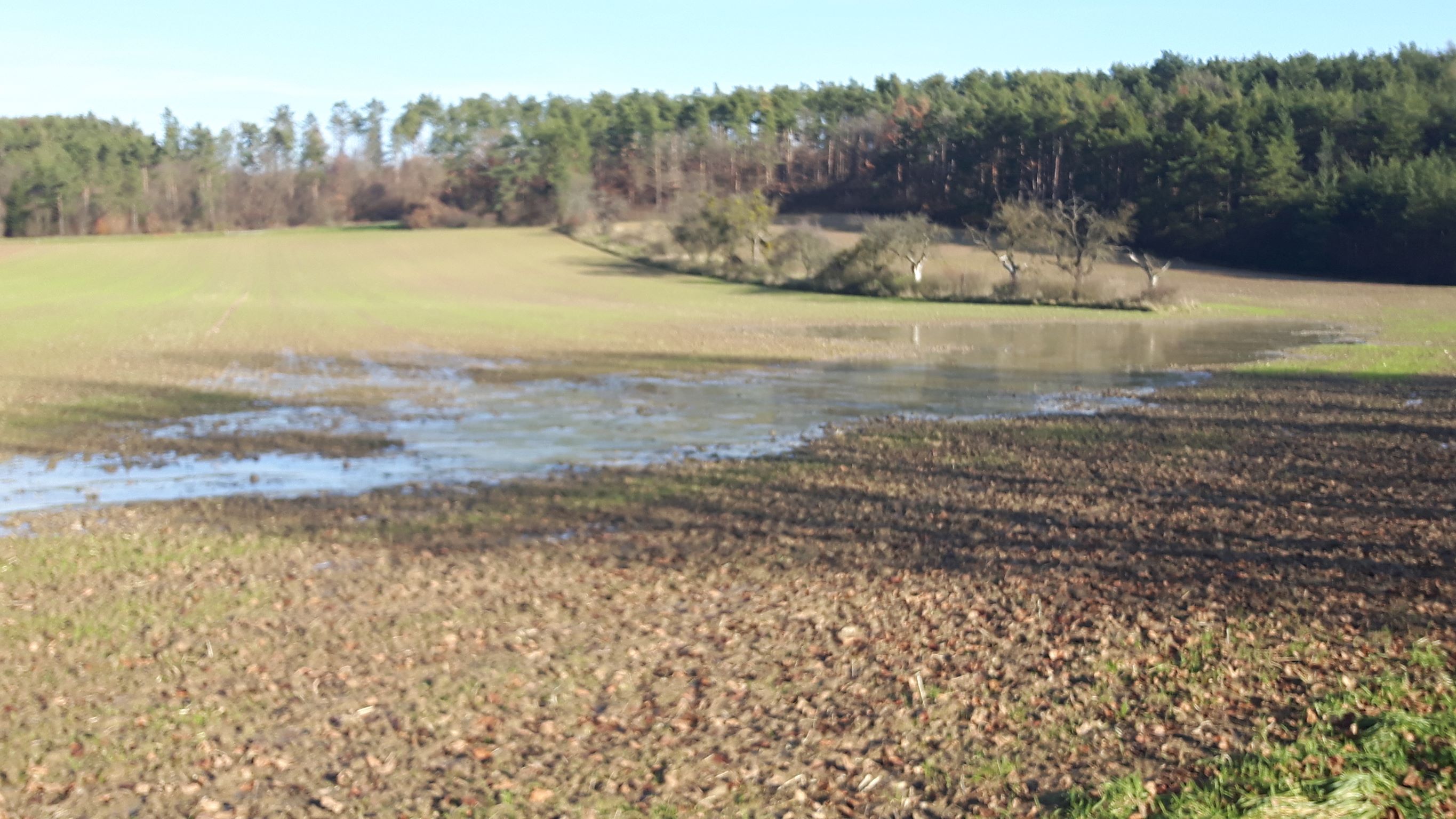 Heftige Niederschläge füllen seichte Mulden im ebenen Gelände über dichten, feinteilreichen Böden...